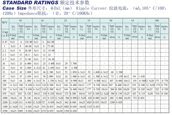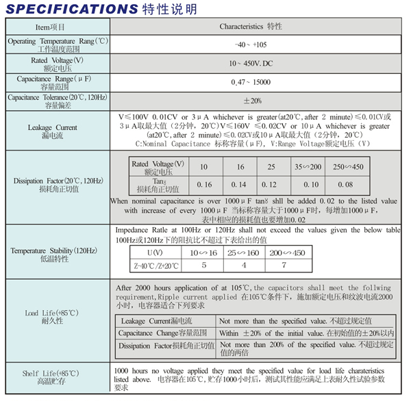 壽命:105℃ ,2000小時或85℃ ,8000小時