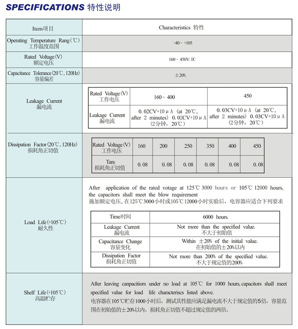 CD11GF Series:High quality model,specially designed of energy-saving lamps,electronic ballasts and LED constant current source,execllent endurance of high frequency ripple current and high temperature,extremely lpng life timeCD11GF系列:高質(zhì)型,專為節(jié)能燈、電子鎮(zhèn)流器、LED恒流源設(shè)計制造,耐高紋波,耐高溫,特長壽命