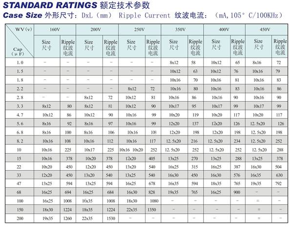 Life Time:125℃,2000 hours or 105℃ ,8000 hours